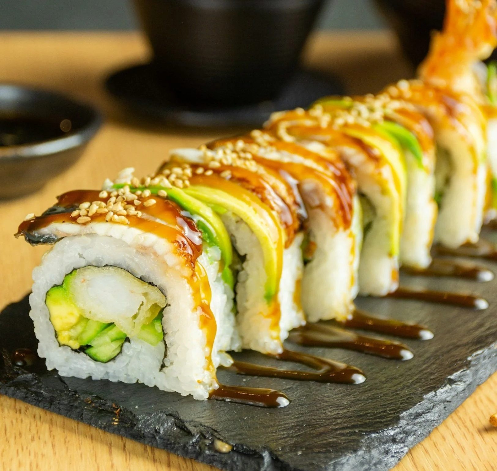 15pc sushi, Spicy Avocado Roll, Spicy Crab Roll, Alaska Roll, Red Dragon Roll