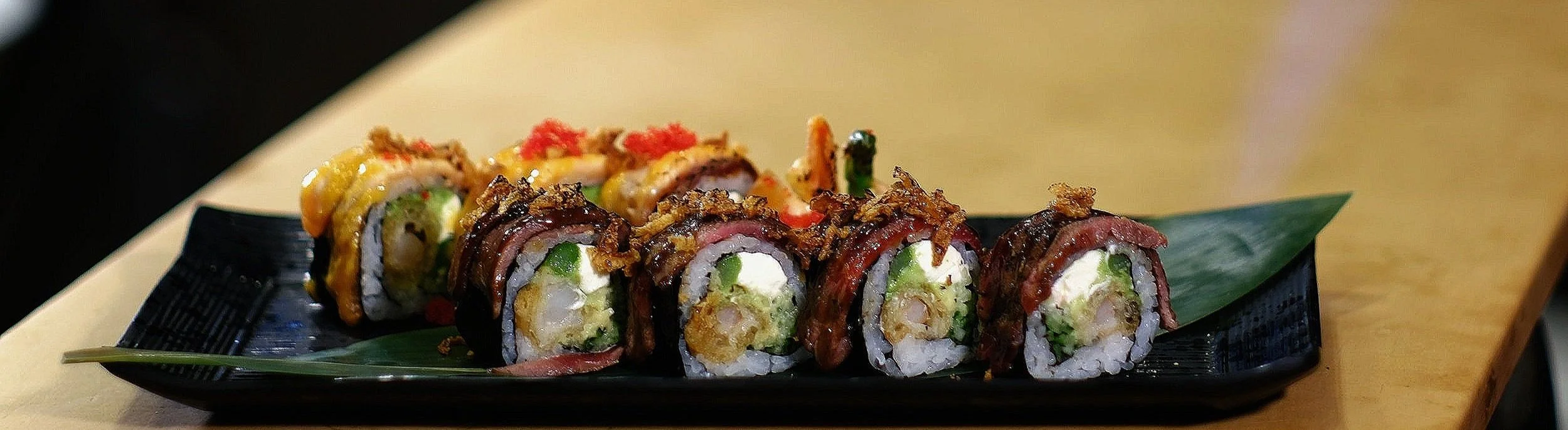 California Roll, Spicy Salmon Roll, Green Dragon Roll, Futo Maki, Boston Roll, Tuna Roll
